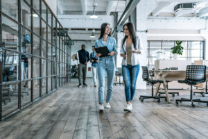 チュニックと同じようなカラー・トーンのボトムスを合わせると、ビジネスのシーンでもトレンドになっているオフィスカジュアルに仕上がり、まとまりのよさが清潔感や知的さを引き出してくれますよ。